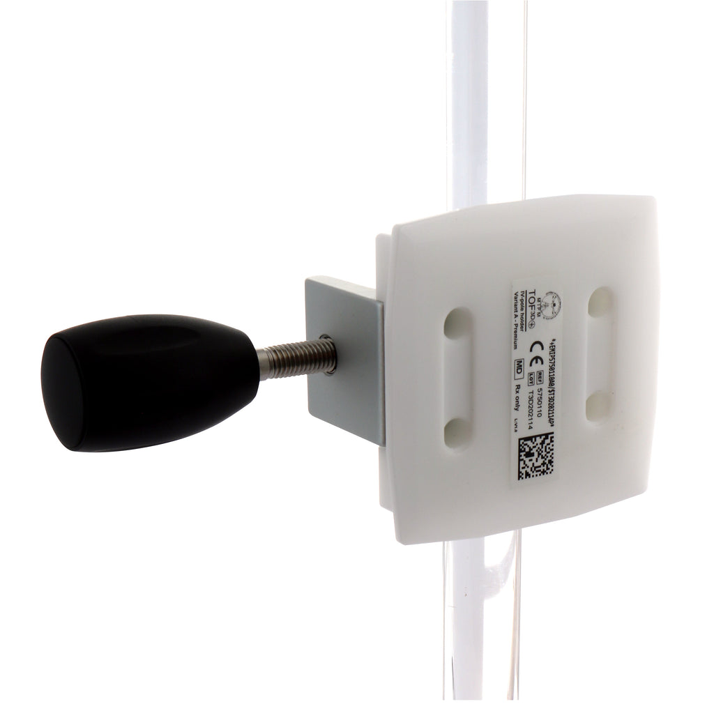 REF: 5750110Variant AThe plastic mounting plate attaches to the TOF 3D and affixes to poles using the mounted robust and easily adjusted aluminium pole mount. Can be mounted horizontally or vertically.Fits poles up to 4.0 cm diameter or rails up to 5.3 cm.This is the premium clamp, for the standard clamp see 2520114